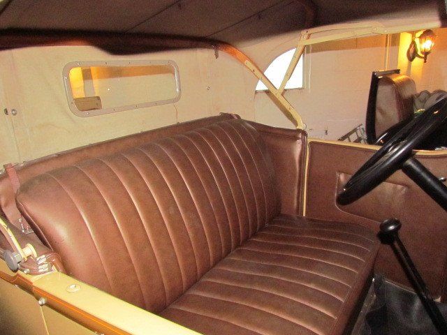 Deze auto komt uit Florida waar hij is gerestaureerd. Het plaatwerk is mooi en goed, het lakwerk is netjes. De motor loopt goed en de auto rijdt goed. Als accessoires heeft de auto banden met wit zijvlak, 2 reservewielen met chrome spiegels in de voorspatborden, cowllampen, een chrome stoneguard en een bagagerek met mooie bijpassende koffer. In het schoonmoederzitje kunnen 2 mensen zitten, zodat je met 4 personen een gezellig dagje uit kunt ervaren.