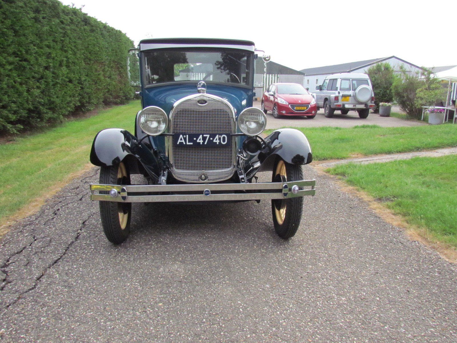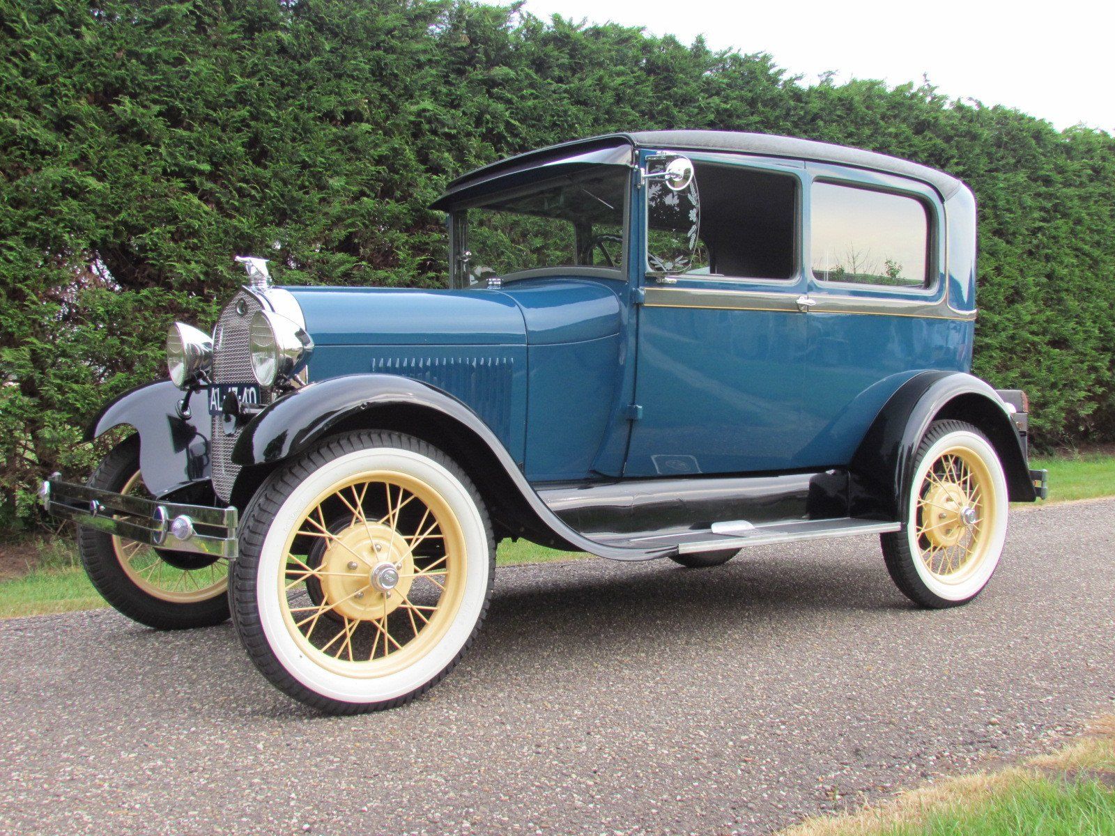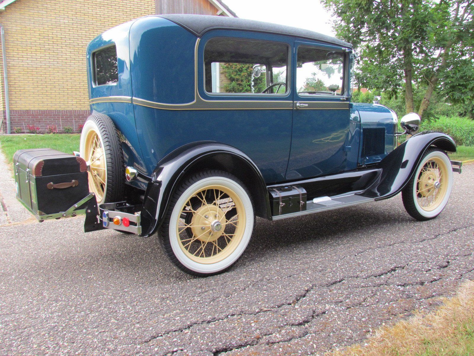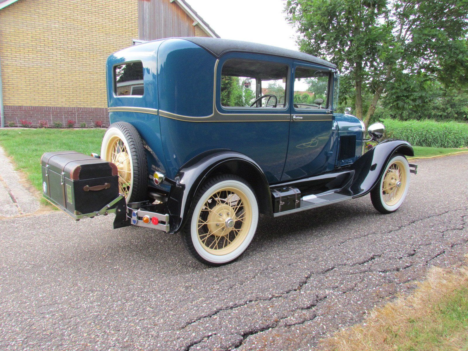 Volledig gerestaureerde A-Ford 2 deurs sedan met mooi strak plaatwerk en lakwerk. De auto heeft nieuwe velgen met zeer goede en nette wide white wall Firestone banden. Als accessoires heeft de auto een bagagerek met koffer en op de treeplank een toolbox met gereedschap.