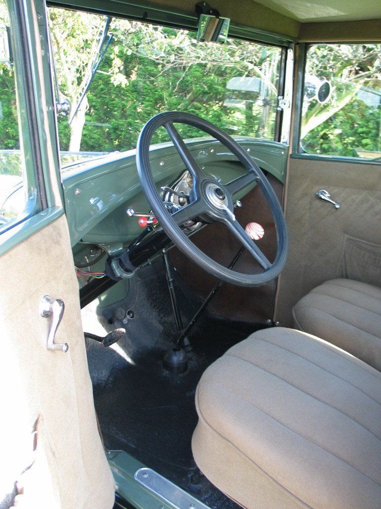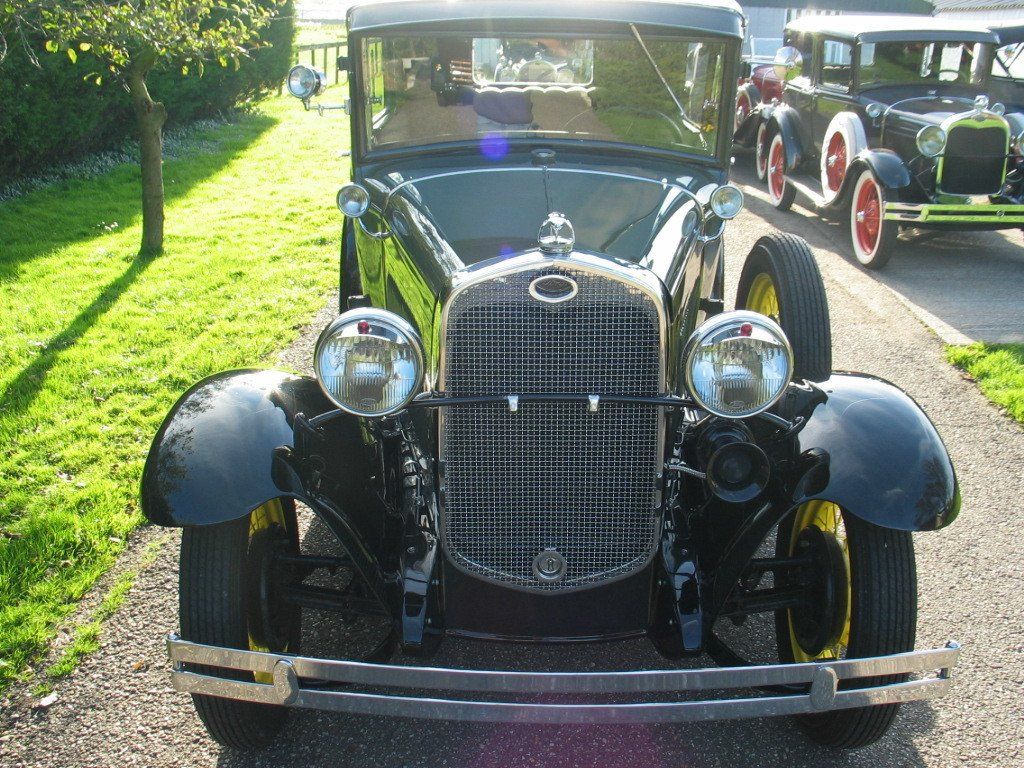 Mooie A-Ford 2 deurs sedan met mooi lakwerk, mooi chrome en een mooi interieur. De auto heeft als accessoires cowllampen, sierpetjes op de koplampen, een stoneguard (stenenvanger) en een quail als radiateur ornament. De motor loopt goed en de auto rijdt goed.