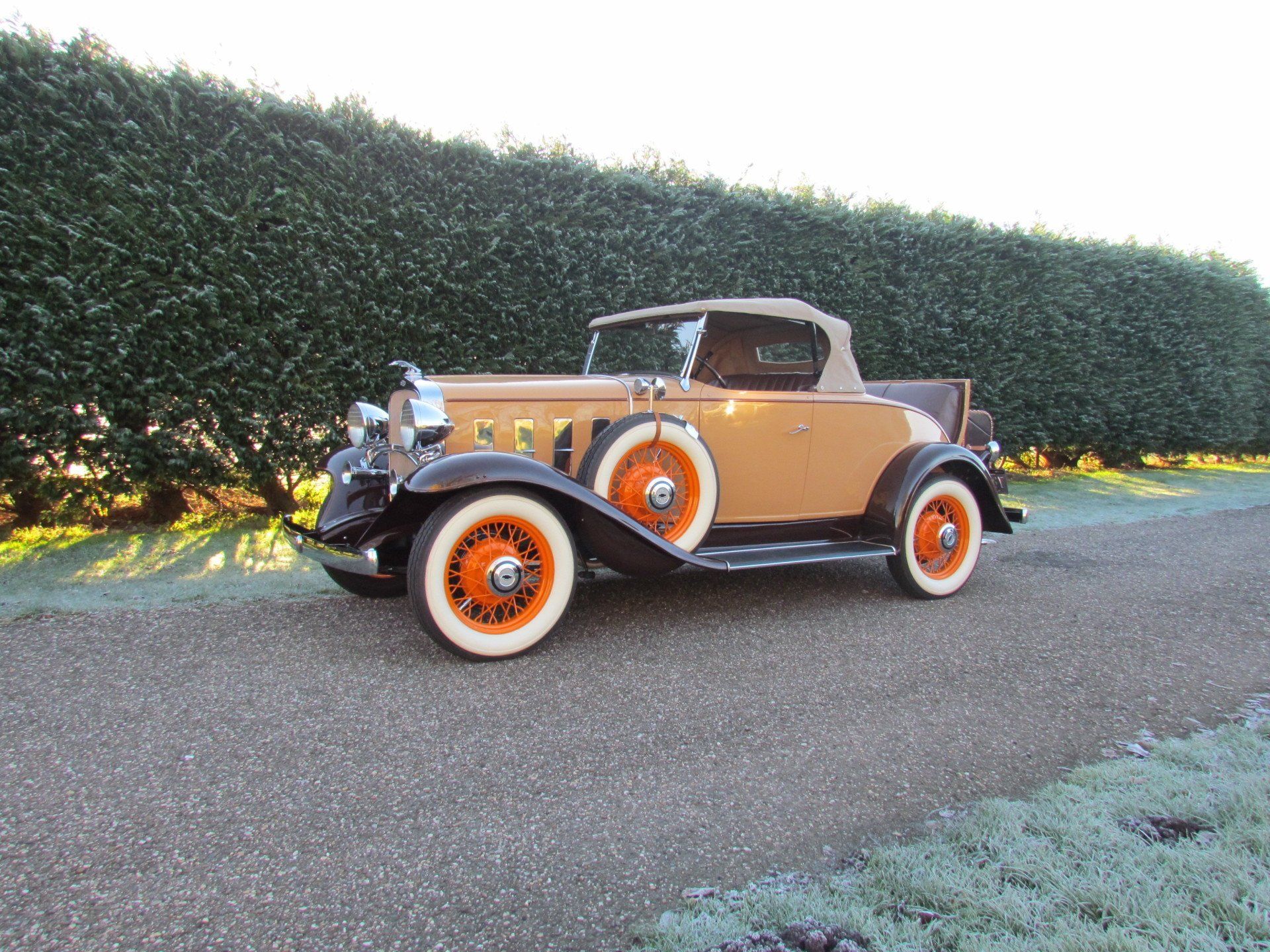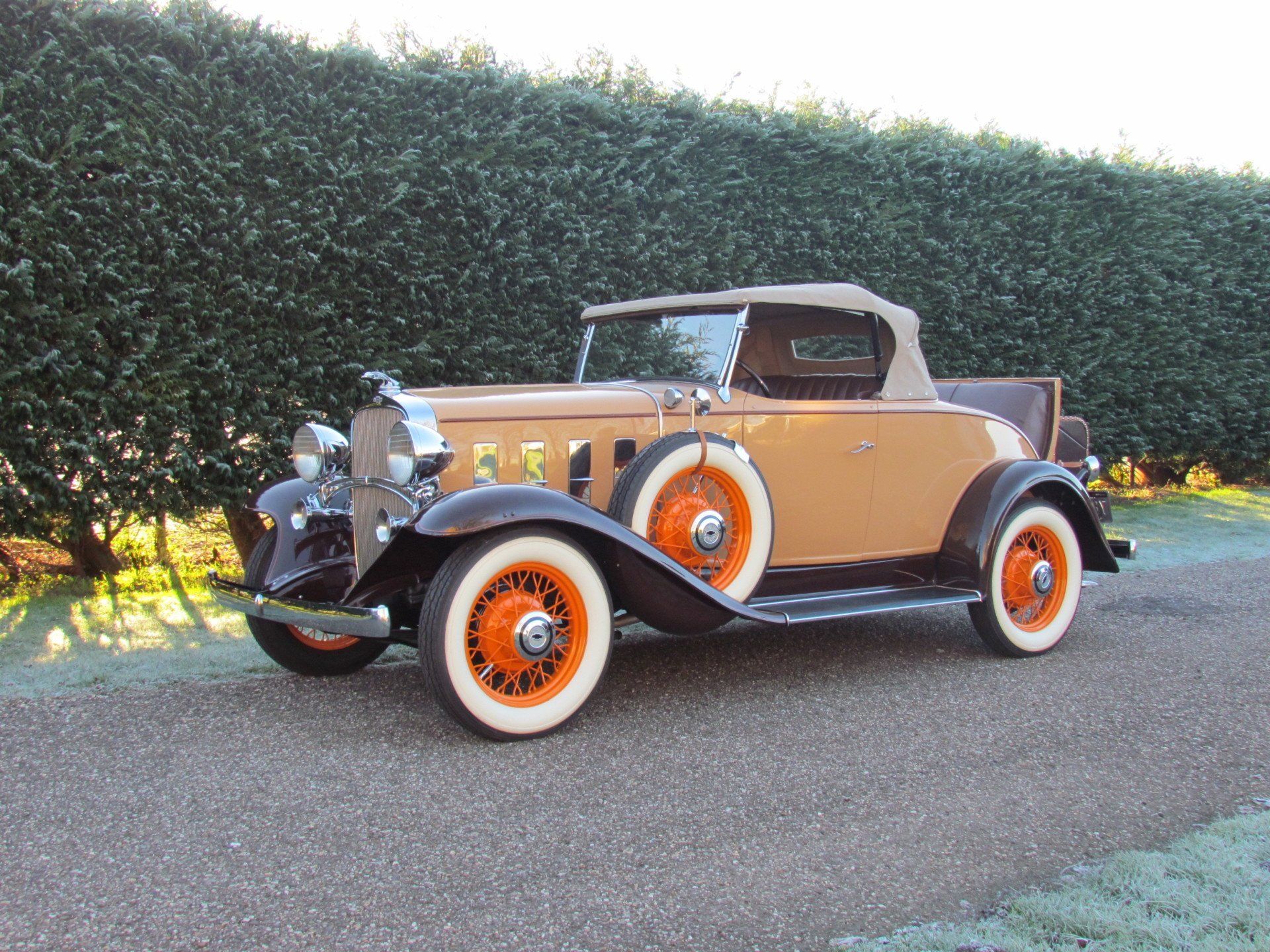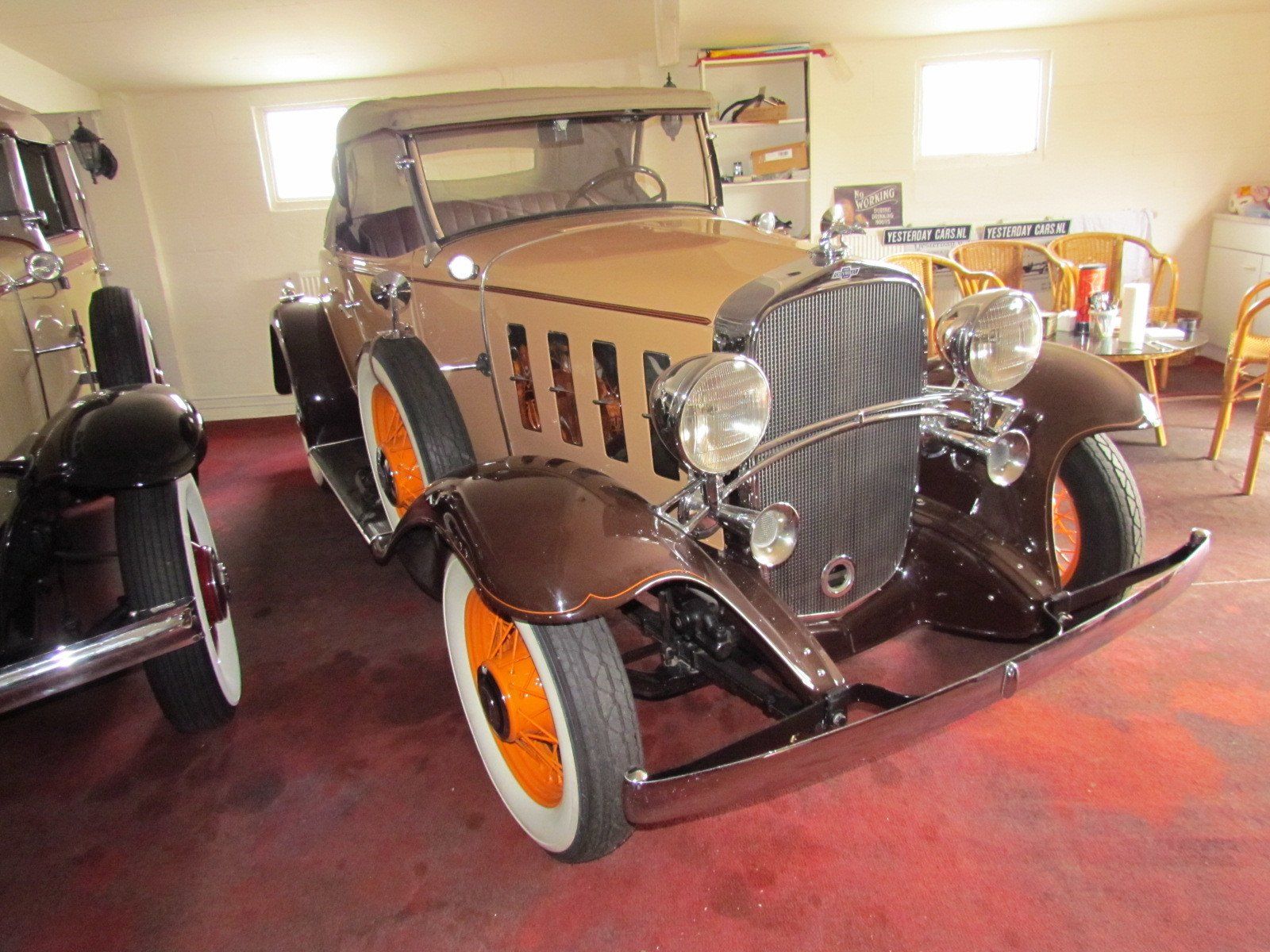 Zeer fraai gerestaureerde auto met mooie lijnen. 1932 staat bekend om zijn aantrekkelijke modellen. Door de crisis werden er minder auto`s verkocht, om het toch aantrekkelijk te maken voor de koper kregen de auto`s een "upgrade". Deze auto heeft als optie banden met wit zijvlak en de 2 reservewielen in de voorspatborden met chrome spiegels erop. Verder heeft de auto verchromende deurtjes in de motorkap, cowllampen, dubbele chrome claxons en een bagagerek met mooie bijpassende koffer. Van dit model zijn er in verhouding weinig gemaakt, slechts 8.552 .