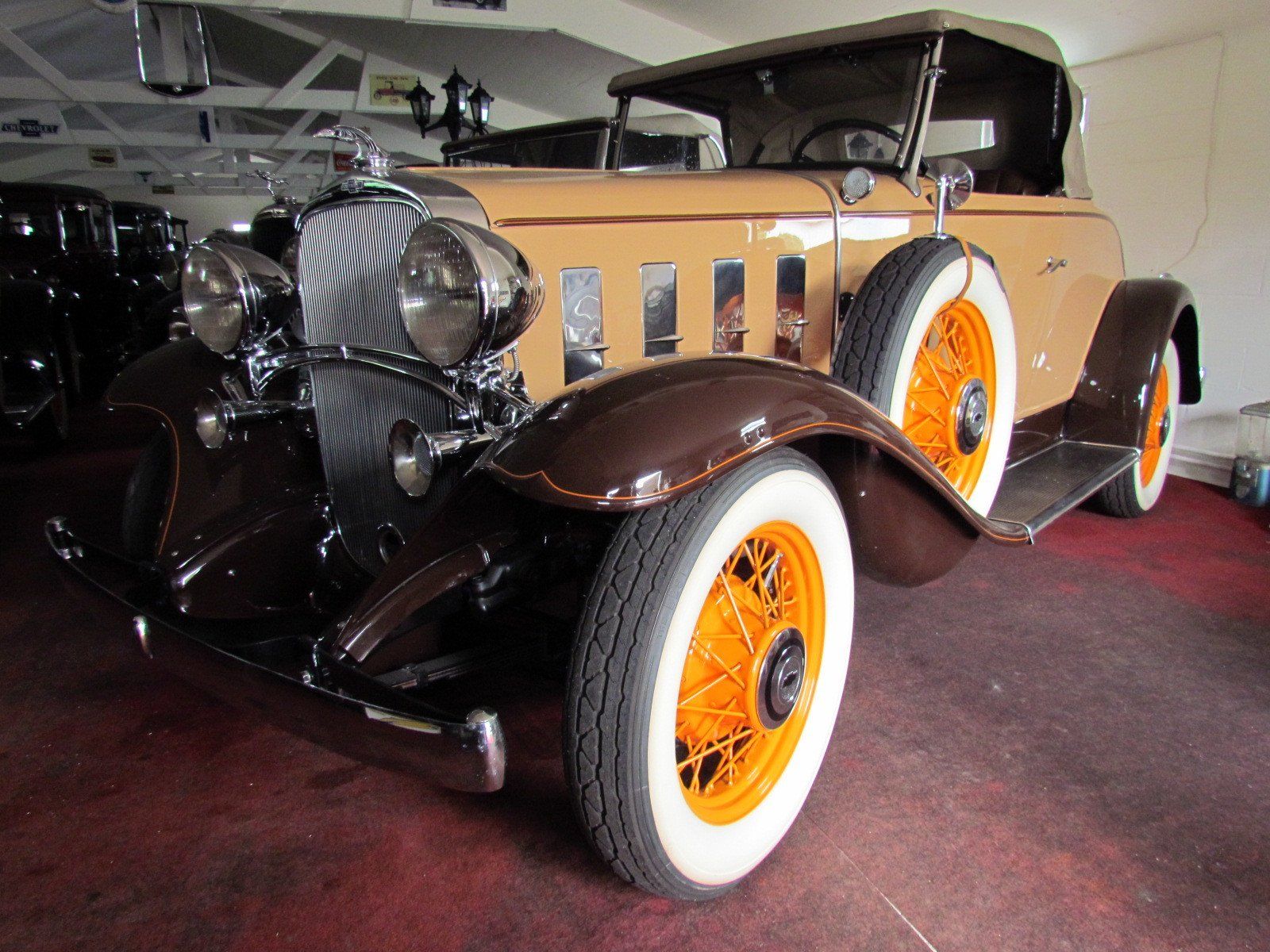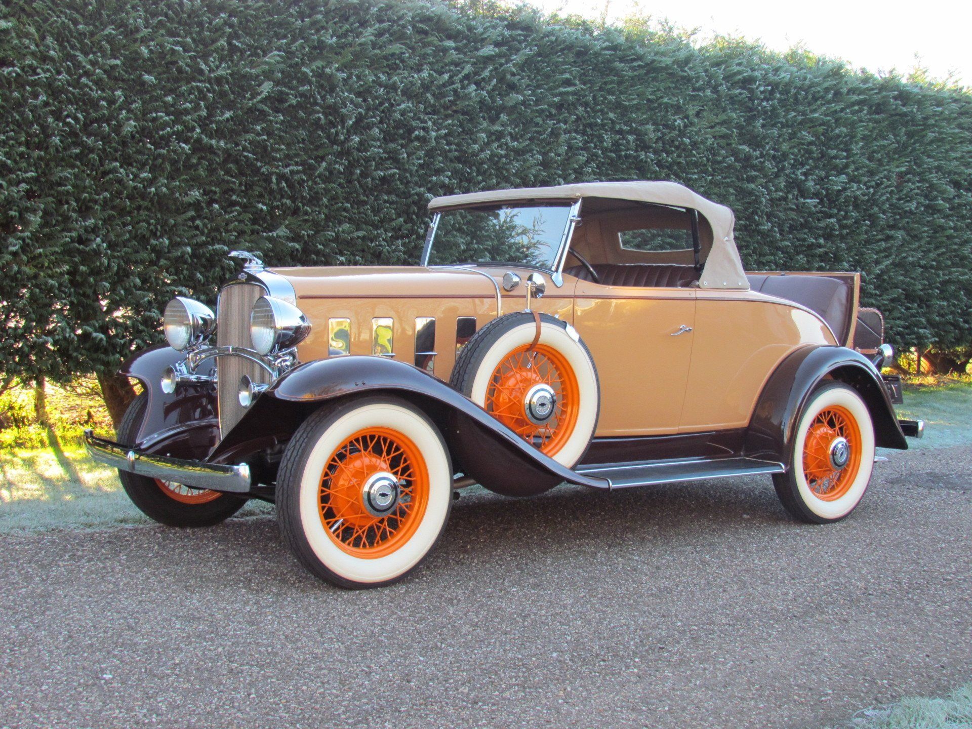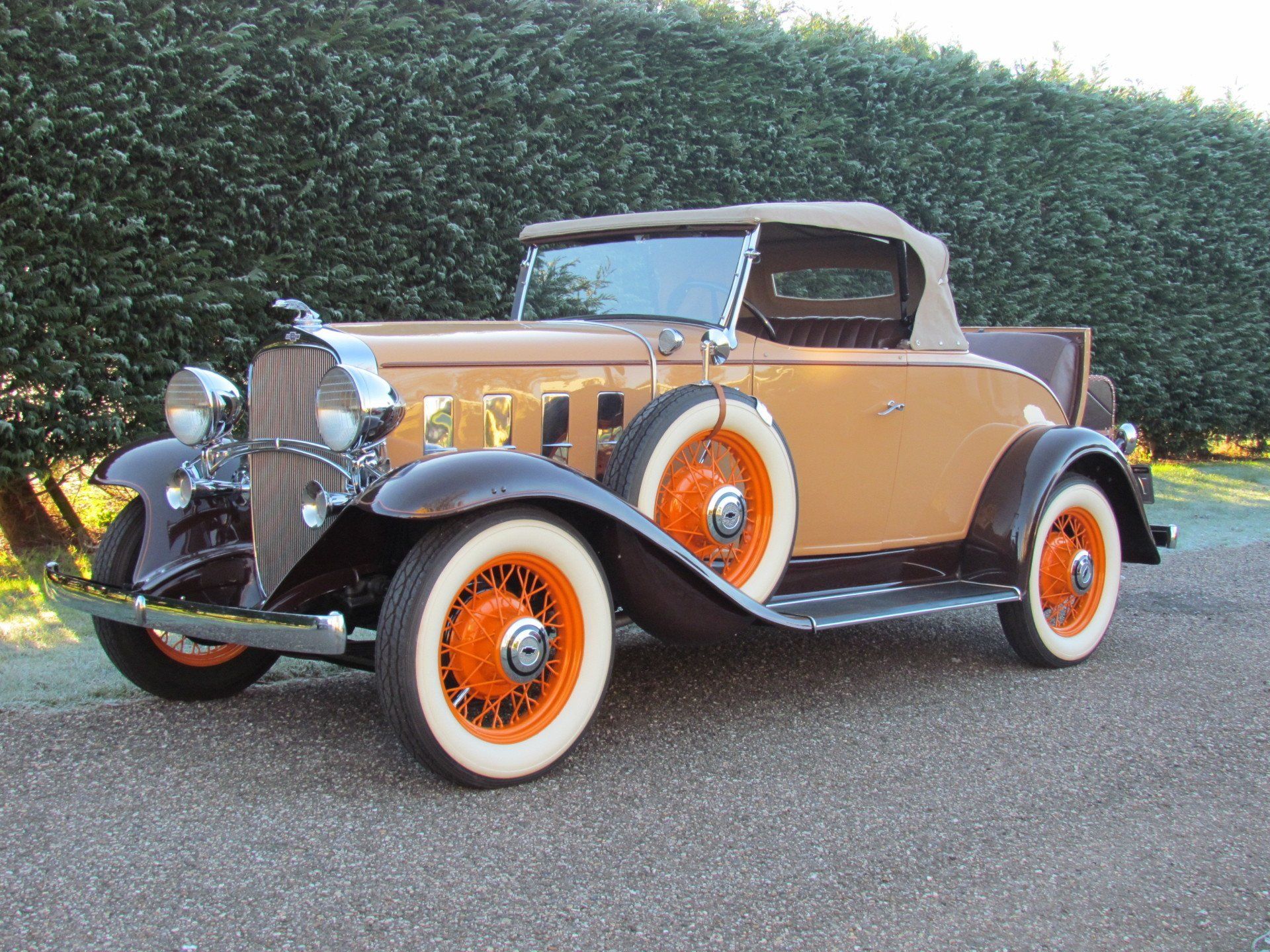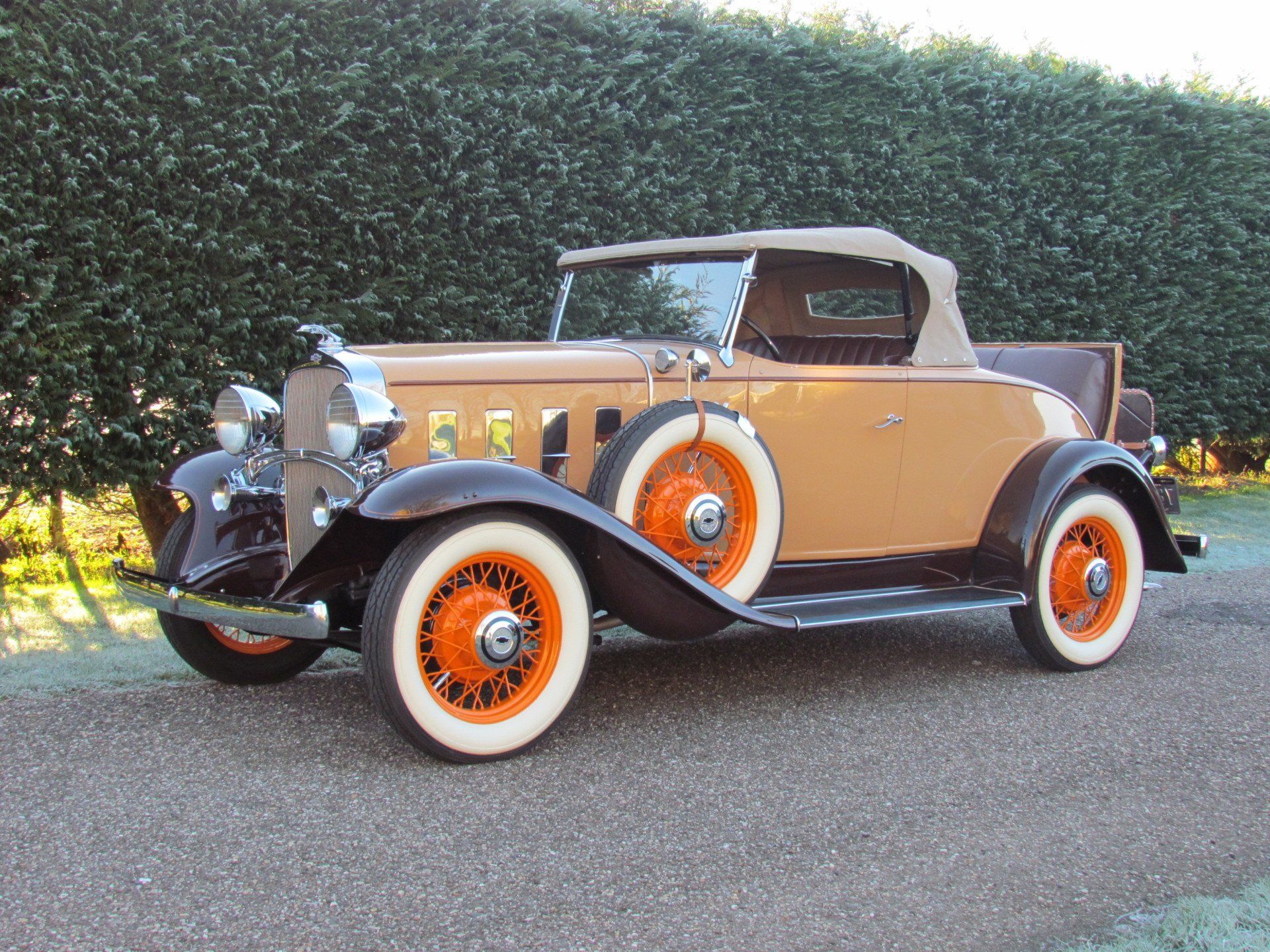 Zeer fraai gerestaureerde auto met mooie lijnen. 1932 staat bekend om zijn aantrekkelijke modellen. Door de crisis werden er minder auto`s verkocht, om het toch aantrekkelijk te maken voor de koper kregen de auto`s een "upgrade". Deze auto heeft als optie banden met wit zijvlak en de 2 reservewielen in de voorspatborden met chrome spiegels erop. Verder heeft de auto verchromende deurtjes in de motorkap, cowllampen, dubbele chrome claxons en een bagagerek met mooie bijpassende koffer. Van dit model zijn er in verhouding weinig gemaakt, slechts 8.552 .