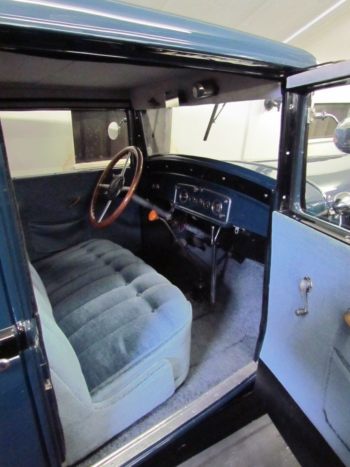 Nice and sleek car, neat and sleek sheet metal, good paint and nicely sprayed. Starts well, runs and drives well. This car has the wooden rims as standard, the wire wheels were an option and as accessories the tires with white sides, 2 spare wheels in the front fenders and a luggage rack with a nice large suitcase.