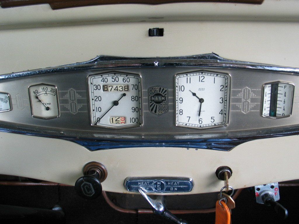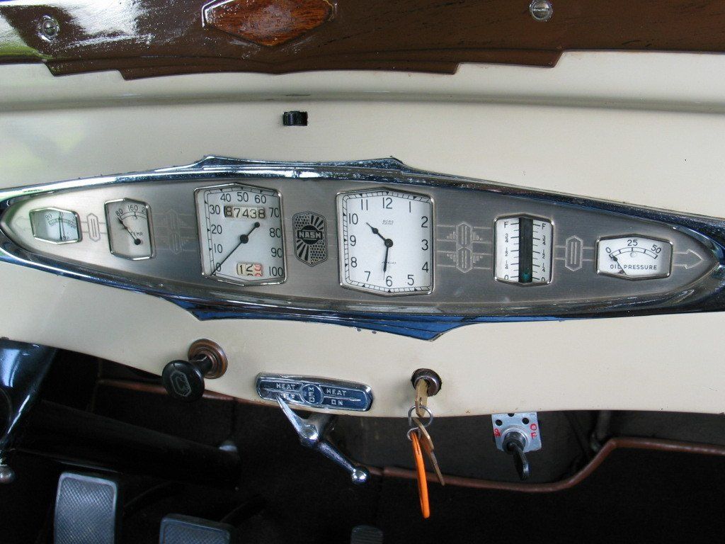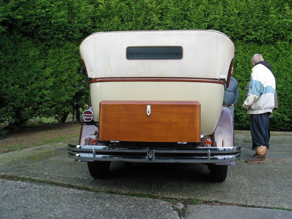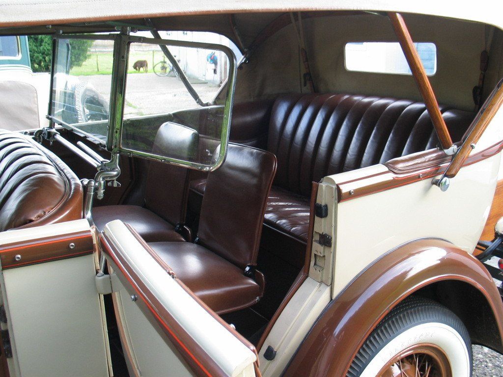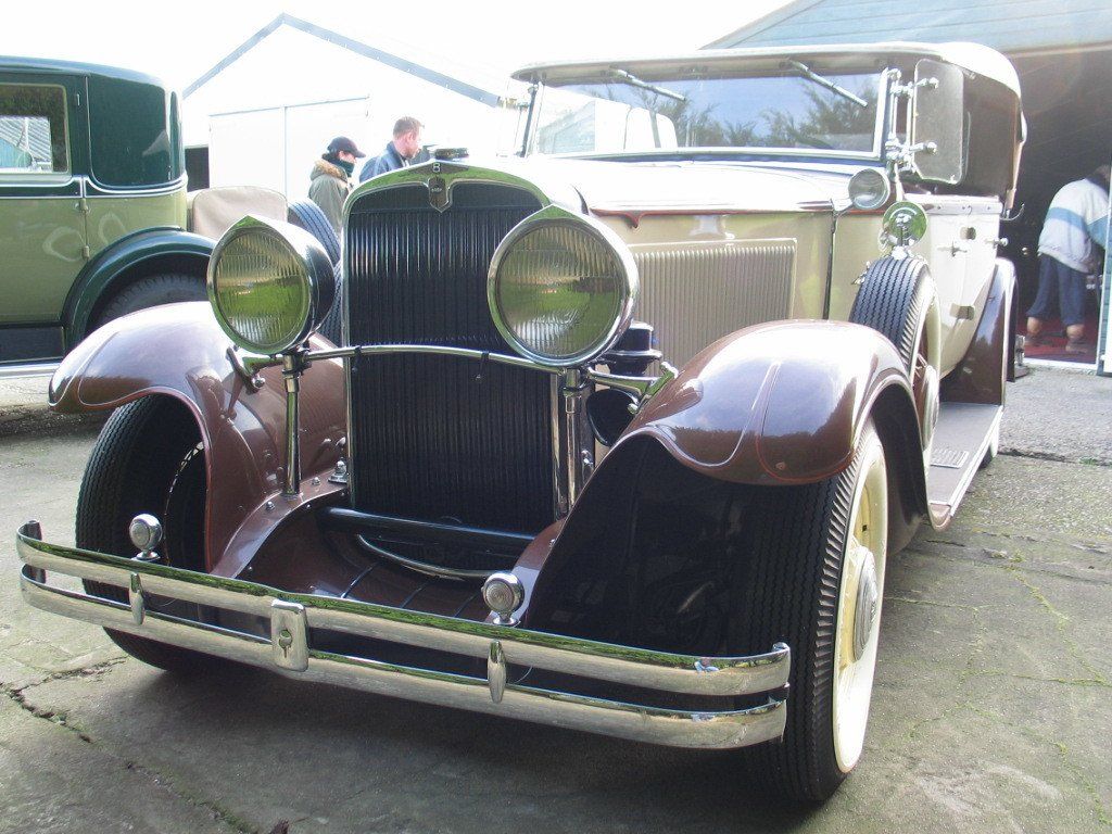 This is the largest and heaviest model that Nash has built this year and can accommodate 7 people. The Line 8 twin ignition engine with twin spark plugs was a progressive thing of the time. With its 133 inch wheelbase, 3.37 meters, it is a very impressive appearance. It is a somewhat older restoration which still looks very good in terms of paint, interior and chrome. As accessories the car has tires with white sidewalls, 2 spare wheels with chrome mirrors in the front fenders, an extra windscreen for the passengers, called "dual cowl windshield", a luggage rack with wooden case.